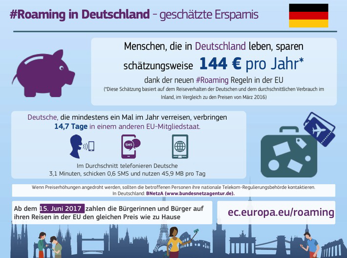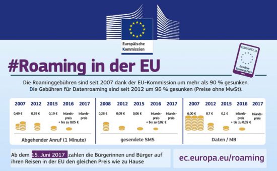 Roaming Kosten für abgehende Anrufe, gesendete SMS und Daten sind seit 2007 kontinuierlich gesunken. Initiiert wurde diese Entwicklung von der EU-Kommission in enger Zusammenarbeit mit anderen europäischen Institutionen. Im Jahr 2015 waren die Kosten bereits um einen Großteil zurückgegangen. Um gänzlich alle Roamingentgelte im Mobilfunk der EU abzuschaffen, haben sich noch im selben Jahr der Europäische Rat und das Europäische Parlament darauf geeinigt eine entsprechende Verordnung bis zum 15. Juni 2017 durchzusetzen.