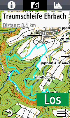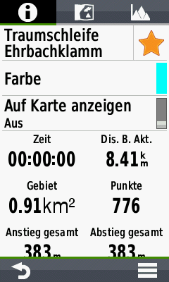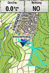 Die Darstellung von Tracks kann nicht bei allen Navis angepasst werden. Falk und Teasi ermöglichen keine individuelle Anpassung von Farbe oder Darstellung und überdecken noch dazu viel von der Karte, so dass teilweise die Art der Wege nicht mehr erkannt werden kann. Garmin bietet zumindest die Möglichkeit, die Farbe anzupassen und verdeckt die Karte durch einen schmalen Track deutlich weniger. Bei der Darstellung der Tracks glänzt auch das TwoNav Anima+. Neben Farbe und Breite der Trackdarstellung lassen sich auch diverse alternative Darstellungsarten pro Track getrennt aktivieren. Nur das TwoNav bietet auch die Möglichkeit, die Trackbreite als reale Breite zu definieren. Der Vorteil: die Trackbreite ist zoomstufenabhängig, und auch weit herausgezoomt bleiben Trackdetails und Karte gut aufeinander abgestimmt sichtbar.
