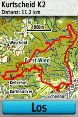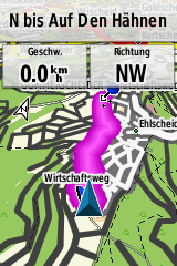 Die Tracknavigation erfolgt bei allen Geräten, wie üblich, als Luftline von Trackpunkt zu Trackpunkt. Hat ein Track jedoch sehr wenig Trackpunkte oder wurde unsauber mit schlechter Kartengrundlage geplant bzw. mit unbekannter Qualität aus dem Internet heruntergeladen, kann es sinnvoll sein, den Track in eine Route umzuwandeln. Die Route versucht, den Track bestmöglich auf das Wegenetz der installierten Karte abzubilden und ermöglicht so eine Routenführung auf dem Wege- und Straßennetz. Vor allem Radfahrer wissen eine solche Funktion zu schätzen. Leider beherrschen nur das Falk Tiger Blu sowie das Anima+ die Umwandlung von Tracks zu Routen. Für die anderen Geräte muss eine solche Umwandlung in der PC-Software vorgenommen werden.
