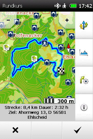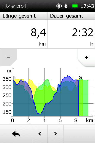 Eine Sprachausgabe ist verfügbar, allerdings nur über ein Bluetooth-Headset. Insgesamt ist die Navigation ordentlich und macht es dem Nutzer, auch bei höheren Geschwindigkeiten (z.B. auf dem Rennrad), leicht der Route zu folgen.