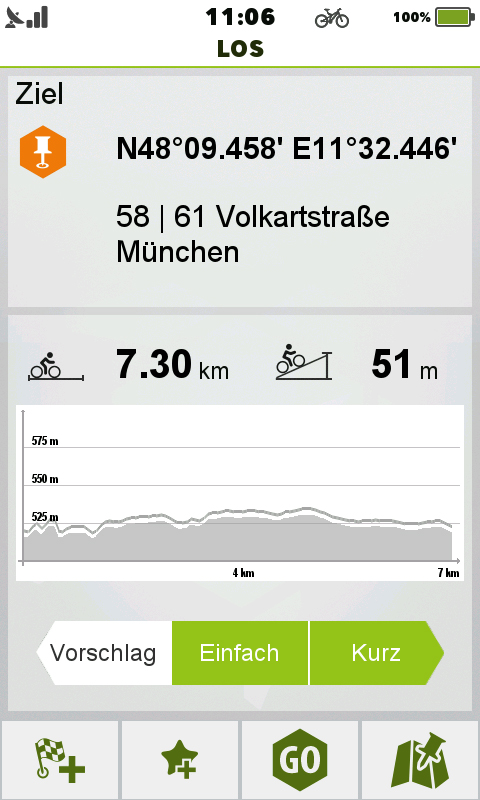 Leider ist die inhaltliche Qualität der Sprachausgabe nicht immer eindeutig und auch nicht frei von Fehlern. Immer wieder wurden wir auf Kreisverkehre hingewiesen, obwohl es sich um einfache Kreuzungen oder Abzweige gehandelt hat. Die Sprachausgabe wirkt wie aus einem Fahrzeug-Navigationssystem und beachtet die Besonderheiten der Navigation zu Fuß oder Fahrrad zu wenig. Dennoch kann die Sprachausgabe eine Hilfe sein, denn auch der Blick auf das Display ist gerade beim schnellen Radfahren und bei schwierigen Lichtbedingungen nicht immer unproblematisch!