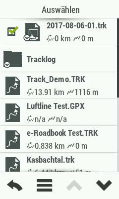 Ein Track hat immer eine Richtung, denn nur so weiß das Navi, welches der nächste Trackpunkt ist. Möchte man einen Track zum Ausgangspunkt zurücknavigieren, ist Trackback, bzw. das Umdrehen des Tracks, eine wichtige Funktion, welche von allen Navis im Test beherrscht wird.