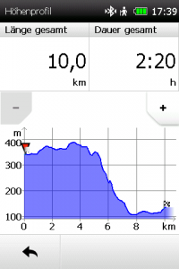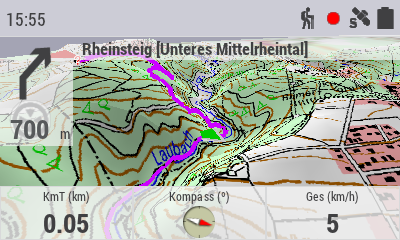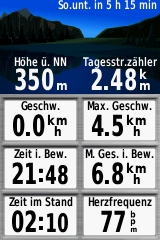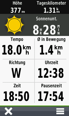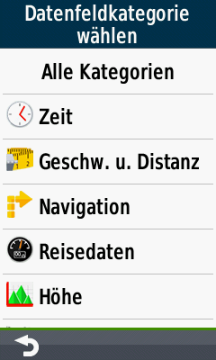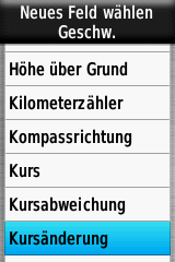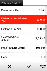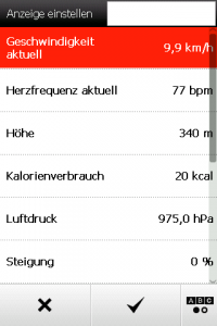 Bei der Anzahl der möglichen Datenfelder bietet das Falk Tiger Blu die wenigsten Möglichkeiten, und der anspruchsvolle Anwender wird schnell an Grenzen stoßen, vor allem bei weniger gewöhnlichen Sportarten (z.B. Gleitschirmfliegen etc.). Vor allem die Datenfelder über der Kartenansicht sind extrem eingeschränkt und bieten nur eine sehr begrenzte Auswahl von neun unterschiedlichen Werten.