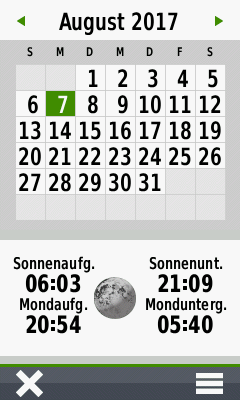 | GPS Apps | ![]() Höhenprofil Aktivitätsalarme (HR, Distanz, Zeit, Geschw.) | ![]() Höhenprofil Annäherungsalarme Distanz messen Fläche messen Sonne & Mond Jagen & Angeln Garmin Adventures | ![]() Höhenprofil Fitness (indiv. Benutzer) Annäherungsalarme Distanz messen Fläche messen Sonne & Mond Jagen & Angeln Garmin Adventures Wetter IQ-Connect Apps | ![]() Höhenprofil Fitness (indiv. Benutzer) Trainings (HR, Kalorien, Distanz, Zeit, Geschw.) | ![]() Höhenprofil Fitness (indiv. Benutzer) Annäherungsalarme Aktivitätsalarme (div.) Blitzer & Tempolimit (wenn in Karte verfügbar) |