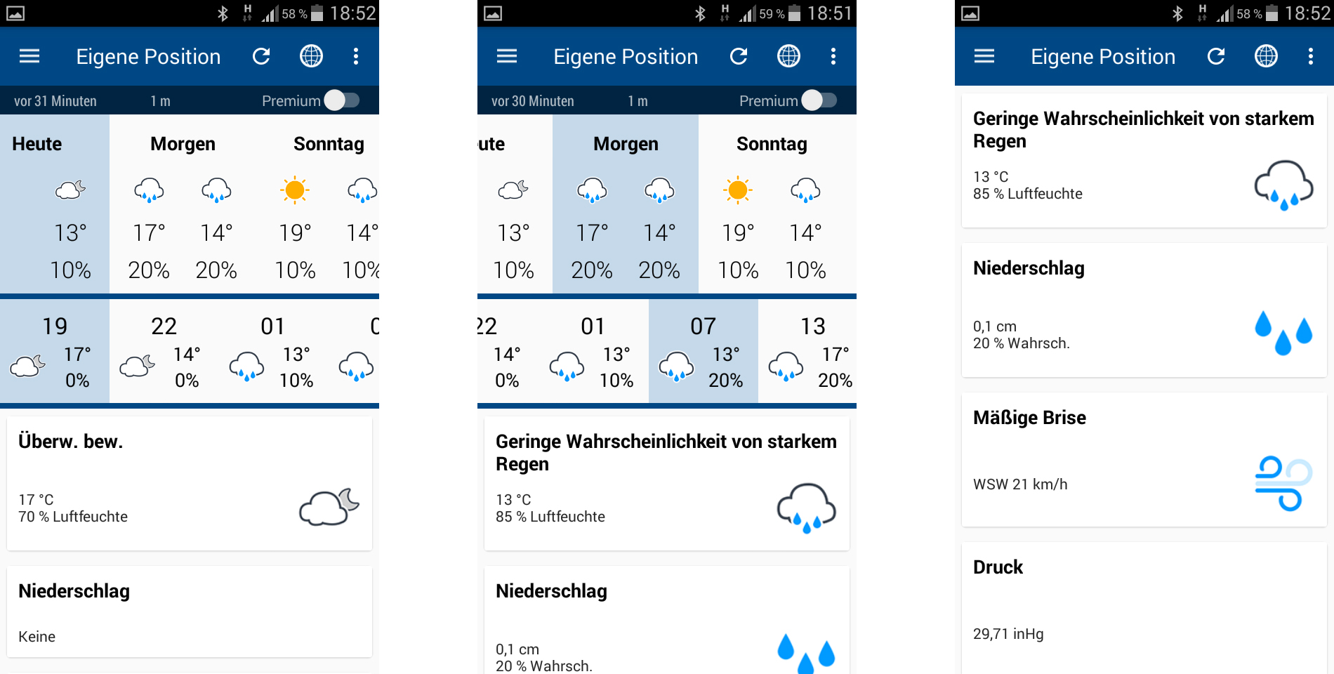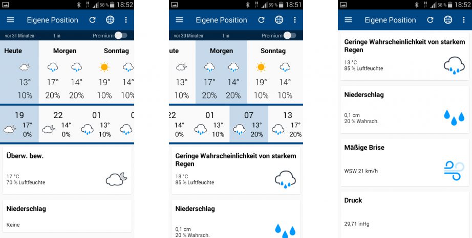 In unserem Test hat der Abruf der gezeigten Wettervorhersagen 9:55 Minuten gedauert (freie Sicht zum blauem Himmel).