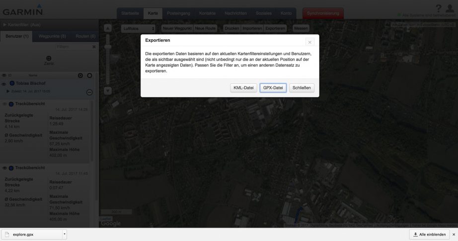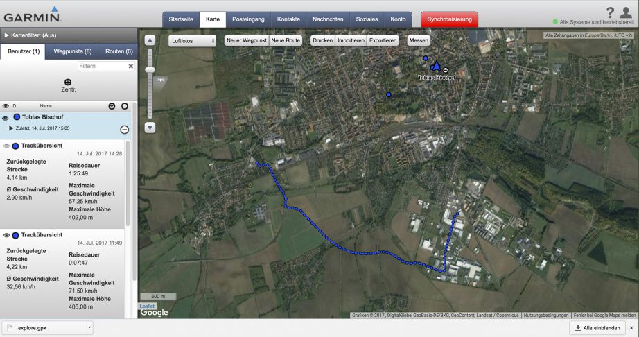 Wir waren nach diesen Erkenntnissen enttäuscht. Denn die Funktionsweise von Sendeintervall und Protokollintervall sind nur schwer nachvollziehbar. Außerdem sind die Bezeichnungen sehr irreführend, da Tracks des Protokollintervalls nicht in der Protokoll Anwendung erscheinen. Leider ist auch das Auslesen der Protokollintervall-Daten auf dem Online-Portal sehr gewöhnungsbedürftig. Nutzt man den Daten-Export, um das Online-Portal zur Verwaltung der eigenen Daten zu vermeiden, bleibt es zunächst mühsam die Gewünschten Trackpunkte oder Tracks herauszufiltern.
