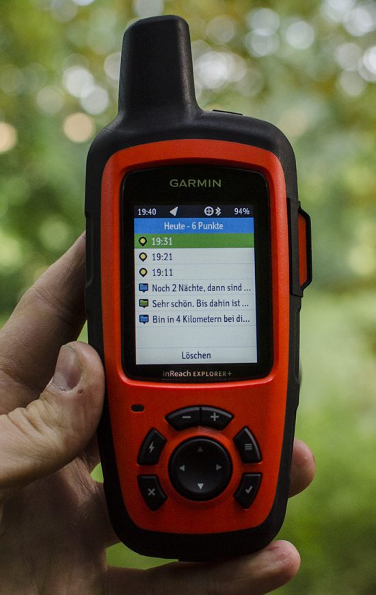 Uns erschien es zunächst sehr praktisch zu sein, dass diese parallel tracken können. Wir hatten angenommen, dass man dadurch flexibel entscheiden kann, wie viele kostenpflichtige Trackpunkte man an Familie, Freunde oder Kollegen senden will, ohne dabei auf eine präzise Aufnahme des Tracks für die eigenen Zwecke verzichten zu müssen. Allerdings werden nur Trackpunkte und Nachrichten (letztere automatisch georeferenziert) des Sendeintervalls in der Protokoll Anwendung abgespeichert. Dementsprechend kann auch nur zu diesen via Luftlinie oder Kompass navigiert werden. Demnach war unser erster Gedanke, Kosten einsparen zu können, hinfällig.