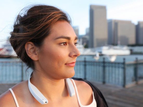 Das Konzept geht auch weg von Kopfhörern, die bestmöglich alle Umgebungsgeräusche ausschalten. Stattdessen gibt es ein weiteres interessantes und neuartiges Bestandteil von „N“: Open-ear Earphones (= Offenes-Ohr Kopfhörer). Will man andere nicht mit den Geräuschen des Nackenbügels belästigen, können die Offenes-Ohr Kopfhörer über USB am Nackenband angeschlossen werden. Durch eine Aussparung in den Hörmuscheln mischen sich wiedergegebene Musik oder Anweisungen von Nigel mit den Umgebungsgeräuschen des Nutzers. Da die Lautstärke automatisch angepasst wird, entgehen selbst dem Gehör von Musikliebhabern keine wichtigen Geräusche mehr von Straßen, Sirenen, Vögeln und ähnlichem.