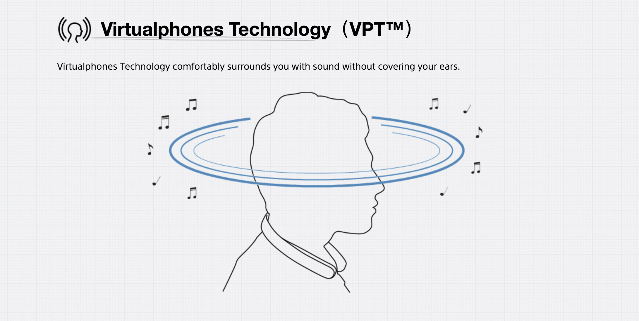 Durch die „Virtuelle Kopfhörer Technologie“ verschmilzt Musik oder auch Nigel’s Stimme mit den Geräuschen der Umwelt.