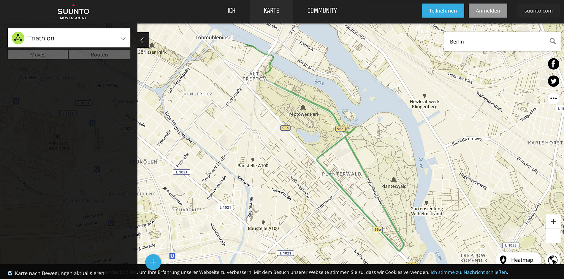 Suunto hat auch die im Jahr 2016 vorgestellten Heatmaps durch neue Protokolle ergänzt. Die Heatmaps geben Auskunft darüber, welche Plätze und Routen besonders hochfrequentiert sind. Somit kann man auf Reisen selbst an unbekannten Orten schnell passende Wege für die präferierte Sportart finden. Auf der anderen Seite geben die Heatmaps natürlich auch Auskunft über größtenteils gemiedene Orte, wodurch man fernab des Trubels seinem Sport nachgehen kann. Durch die Movescount Community werden permanent neue Moves für alle 16 Sportarten gesammelt und regelmäßig aktualisiert. Die Routen der Heatmaps können auch auf die Uhr geladen werden um eine Navigation zu planen.