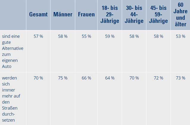 Laut Forsa, einem führenden Markt- und Meinungsforschungsinstitut in Deutschland, halten 57 Prozent der Deutschen (mehr als jeder zweite) E-Bikes für eine gute Alternative zum eigenen Auto und 70 % können sich vorstellen, dass sich E-Bikes bald auf den Straßen durchsetzen werden. Dieses Ziel steht auch auf der Agenda des Deutschen Bundestags. Er fordert die Erhöhung des Radverkehrsanteils in Deutschland bis zum Jahr 2030 auf 25 Prozent.