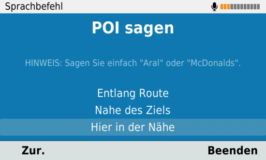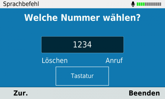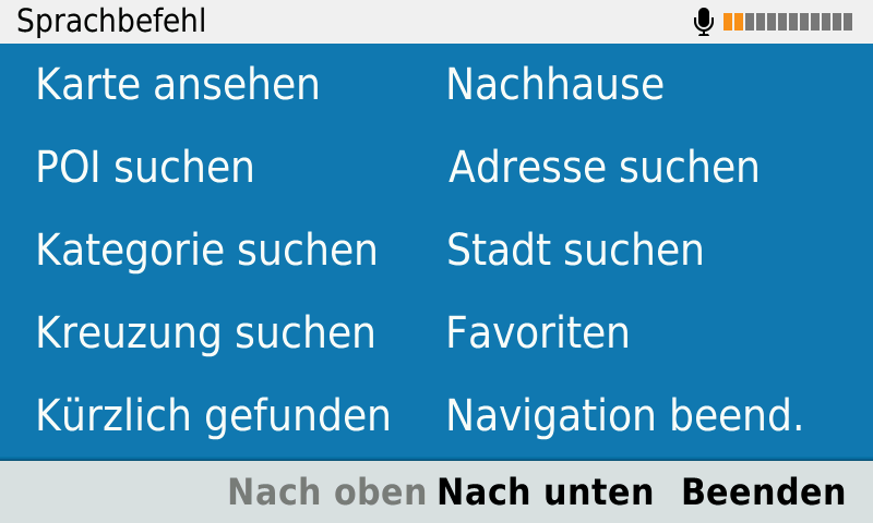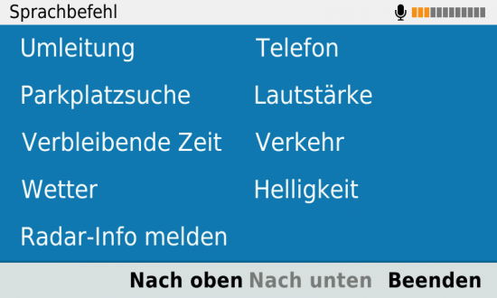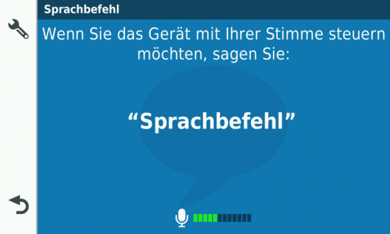 Das Garmin DriveLuxe 51 erlaubt, relevante Eingaben über die Sprache zu tätigen. Sagt der Fahrer das Wort „Sprachbefehl“ öffnet sich das dazugehörige Fenster und offeriert die möglichen Befehle. Neben der Suche nach Städten, Adressen und POIs kann unter anderem auch die Karte angezeigt, können Telefonate ausgeführt und Radar-Infos gemeldet werden. Auch in diesem Test hat uns die Sprachbedienung sehr gefallen. Bei ruhigen Umgebungsbedingungen funktioniert sie sehr zuverlässig, wobei falsch verstandene Befehle schnell durch einen weiteren Sprachbefehl korrigiert werden können. Gibt es hingegen zu viele Geräuschquellen (manche Autos sind weniger vor Außengeräuschen abgeschottet als andere), aktiviert sich die Sprachbedienung bei diffusen Geräuschen von alleine. Im schlimmsten Fall werden dann tatsächlich intendierte Sprachbefehle sehr oft falsch verstanden, wodurch man schließlich doch geneigt ist, die Tasten zu bedienen.