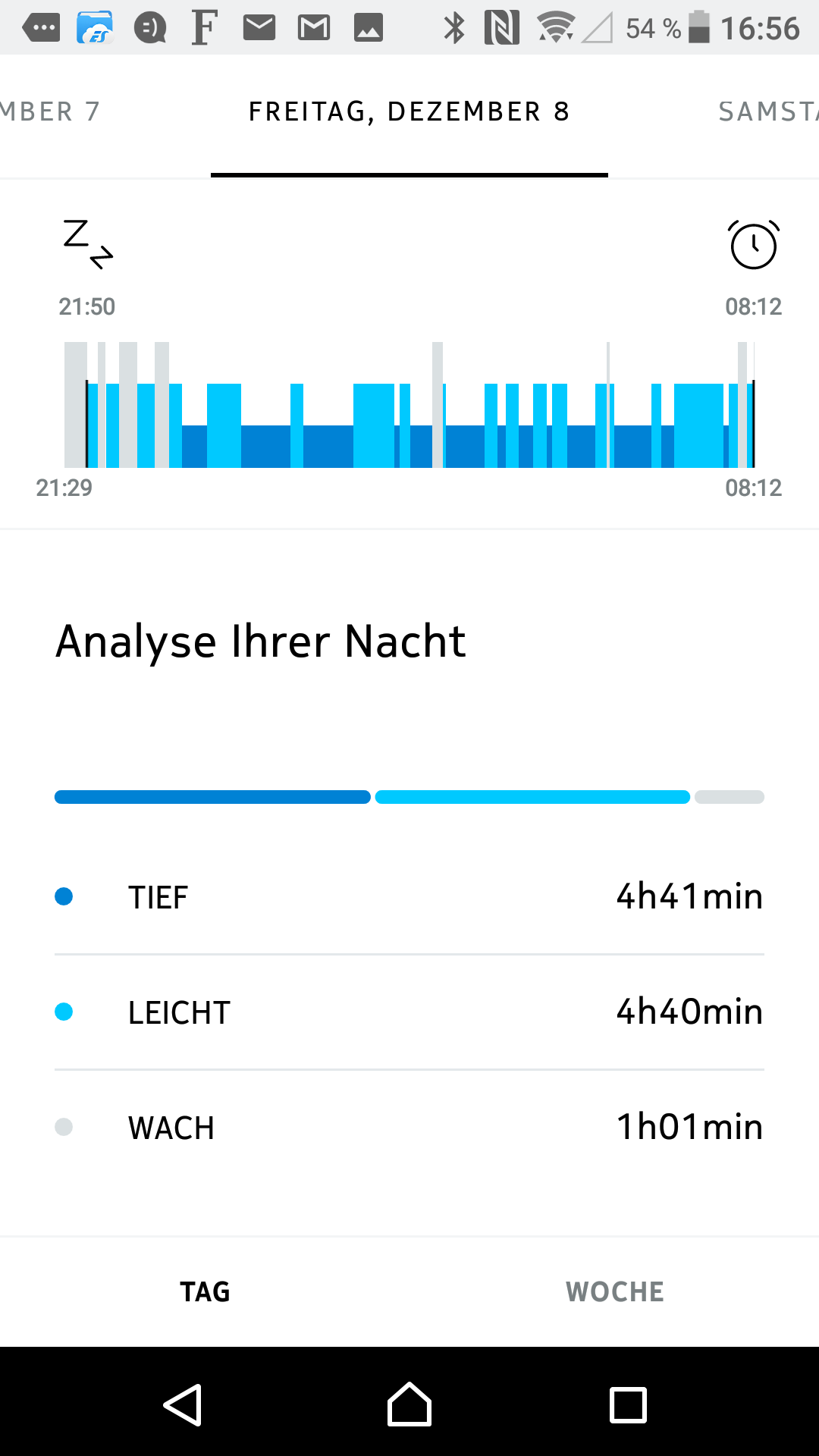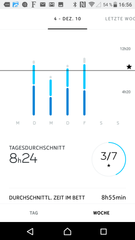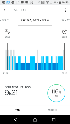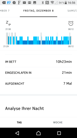 Die Schlafmessung ist wohl eher eine Spielerei – grob jede vierte Nacht schlafe ich laut Uhr gleich gar nicht.