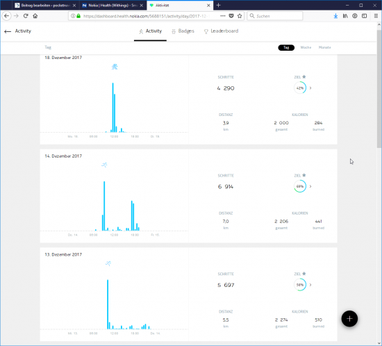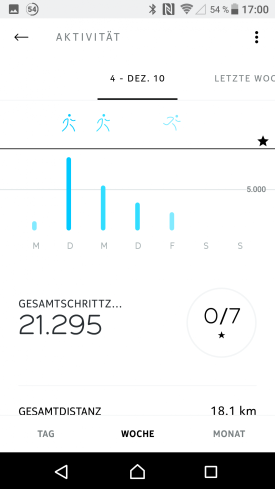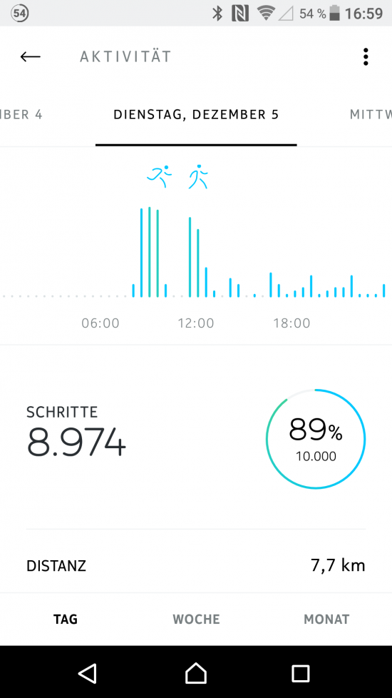 Neben der Auswertung sind auch die Einstellmöglichkeiten bzw. Anpassbarkeiten unbefriedigend (Schrittweite, eigene Aktivitätsdefinitionen,…)