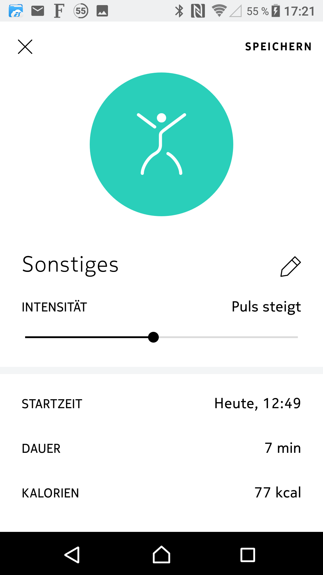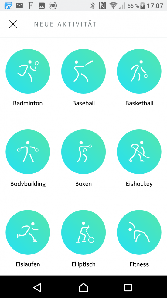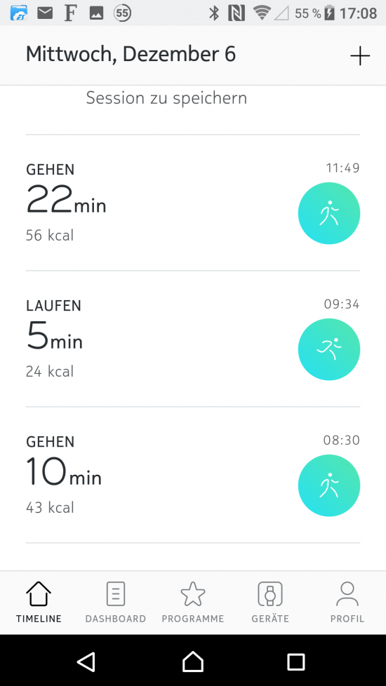 Aus Schritt- und Herzfrequenzdaten kann die Nokia Steel HR Aktivitäten automatisch erkennen. In unserem Test hat die Erkennung und Unterscheidung zwischen Gehen und Laufen in der Regel gut geklappt und auch kurze Bewegungseinheiten von wenigen Minuten wurden erfasst. Insgesamt soll die Nokia Steel HR bis zu 10 unterschiedliche Aktivitäten automatisch erkennen, darunter Gehen, Laufen, Schwimmen uvm. Getestet haben wir jedoch nur Gehen und Laufen. Wird eine Aktivität nicht automatisch erkannt und kann keinem Bewegungsprofil zugeordnet werden, kann der Nutzer diese Zuordnung manuell in der App vornehmen.