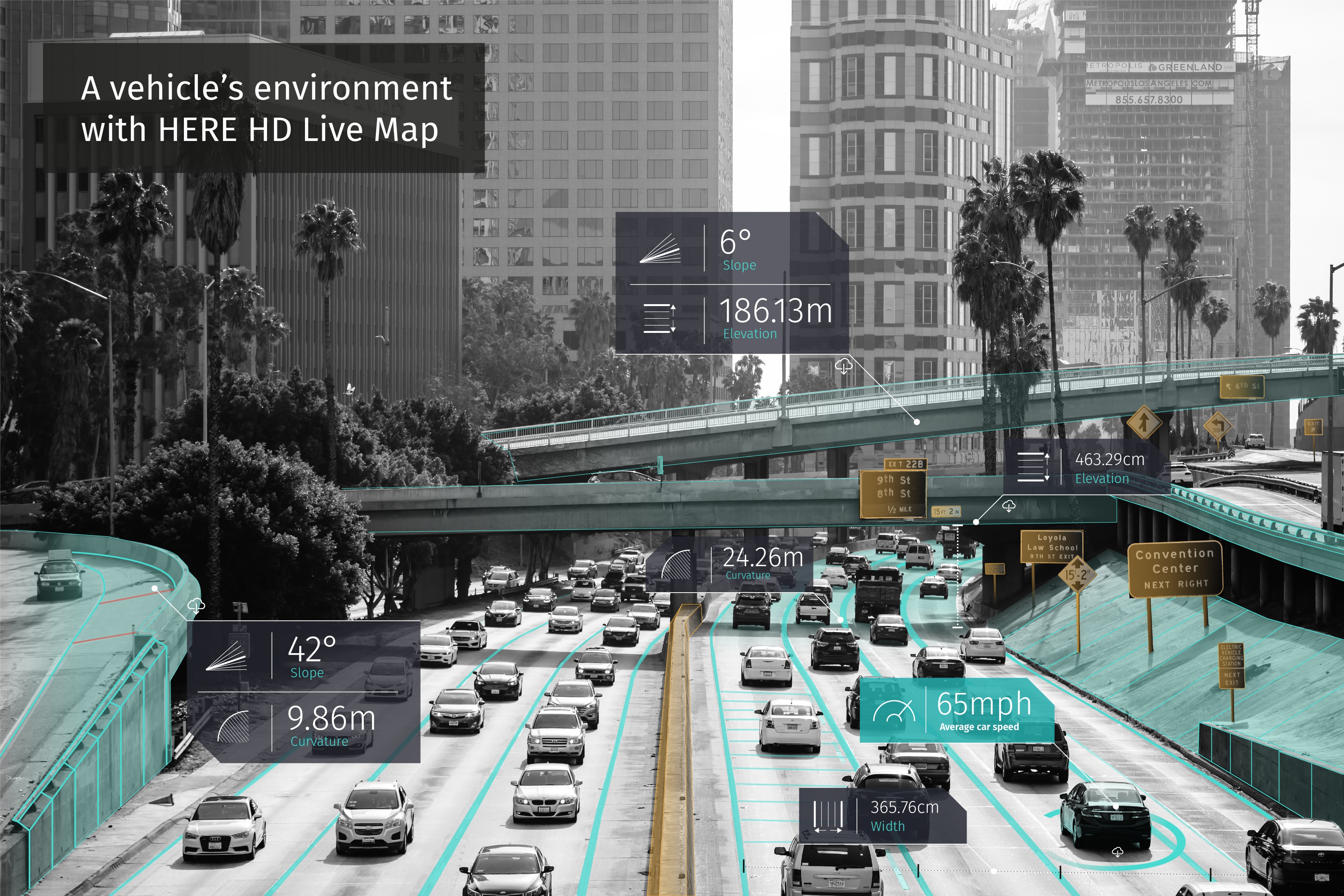 Die Kartentechnologie HD Live Map von Here ist ein cloudbasierter Service, der durch mehrere Datenquellen wie etwa Fahrzeugsensordaten kontinuierlich aktualisiert wird und Fahrerassistenzsysteme (ADAS – Advanced Driver Assistance Systems) ergänzt sowie das autonome Fahren unterstützt.