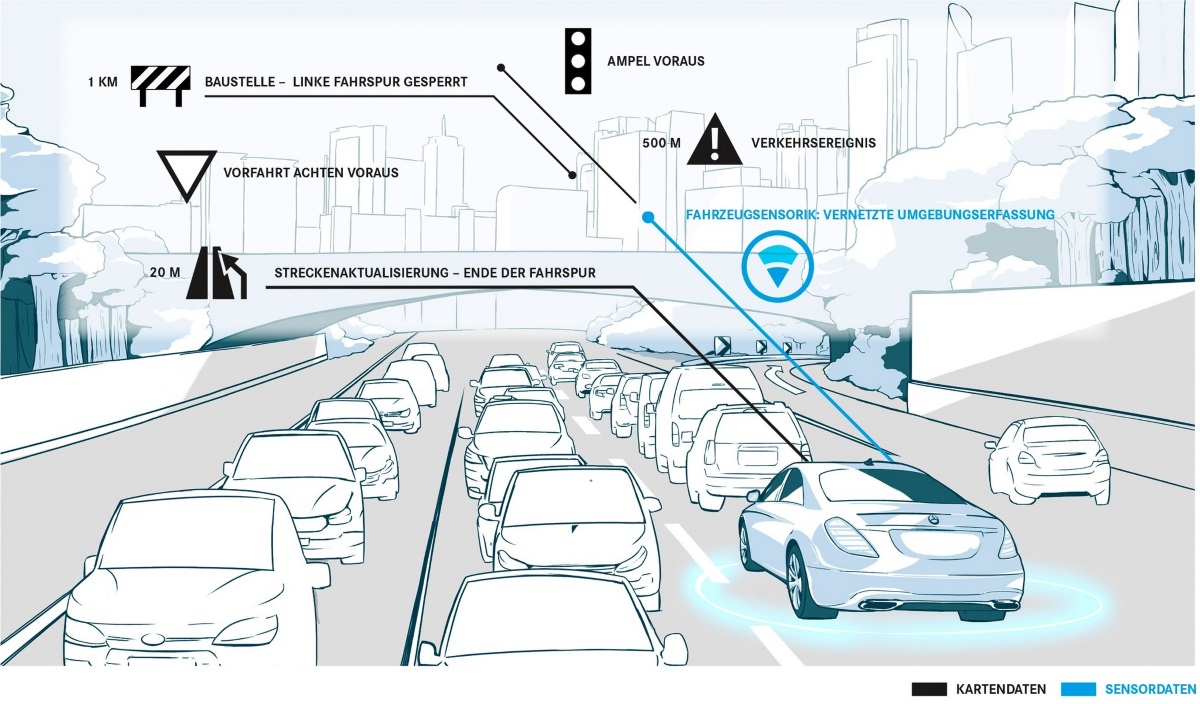 Die große Informationsdichte einer großen Anzahl an Autos und vielfältiger Sensordaten ist laut Daimler notwendig, um Änderungen und Abweichungen im Straßenverkehr validieren zu können und eine hohe Qualität und Zuverlässigkeit der sich selbst aktualisierenden Karte zu gewährleisten.