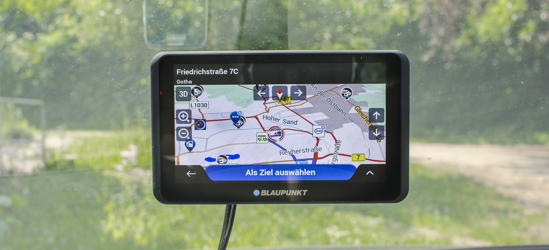 Das kapazitive 6,2 Zoll Touch-Display bietet eine übliche Auflösung von 800 x 480 Pixel. Auch wenn diese Auflösung für ein mobiles Navi nach wie vor in Ordnung geht, muss an dieser Stelle angemerkt werden, dass bei Smartphones und Tabletts mittlerweile weitaus höhere Auflösungen Standard sind. Der Touchscreen reagiert schnell und zuverlässig bietet allerdings kein Multitouch z.B. um die Karte zu zoomen.