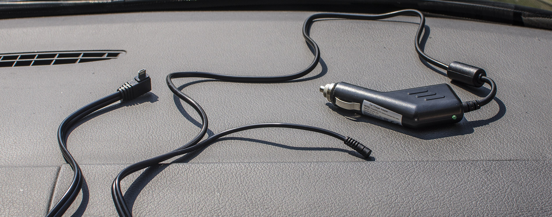 Das 1,5 Meter lange und recht dicke Ladekabel wird per MicroUSB-Stecker links in die Aktivhalterung eingesteckt. Die TMC-Antenne ist Teil des Ladekabels, kann allerdings irreversibel auch vom Ladekabel abgezogen und somit getrennt verlegt werden. Auch wenn die Länge und solide Bauweise des Ladekabels für den festen Einbau von Vorteil sein kann, ist sie für die schnelle und flexible Nutzung eher hinderlich.