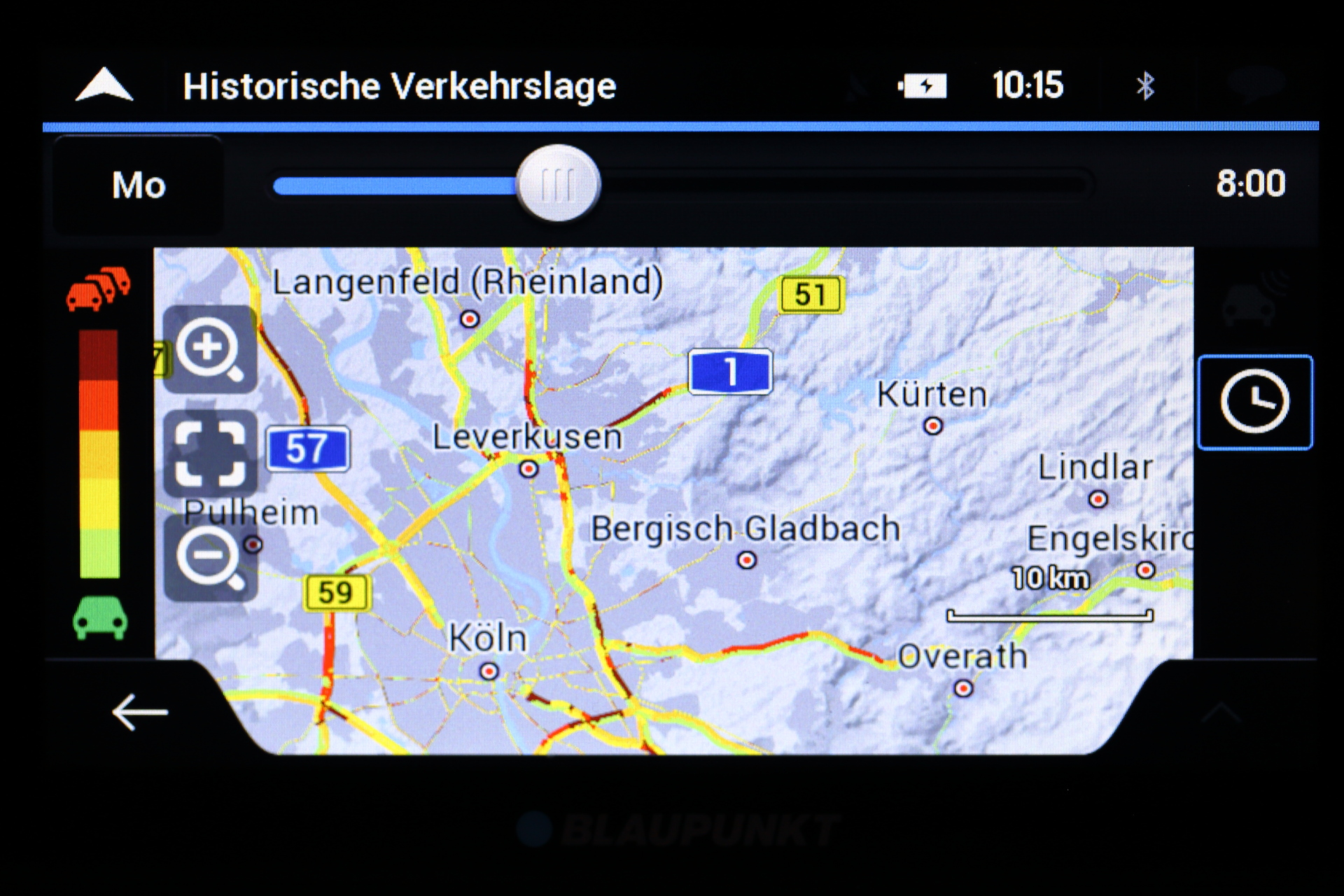 Wird keine TMC-Antenne oder Onlineanbindung genutzt, kann man auf historische Verkehrsdaten zugreifen. Hierdurch lässt sich einsehen zu welchen Uhrzeiten und Wochentagen die geplante Route ohne Verzögerungen genutzt werden kann.