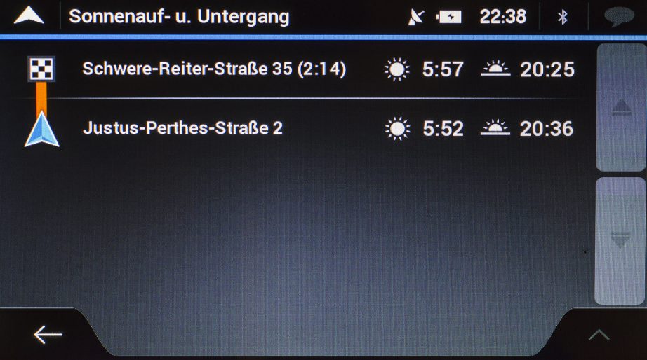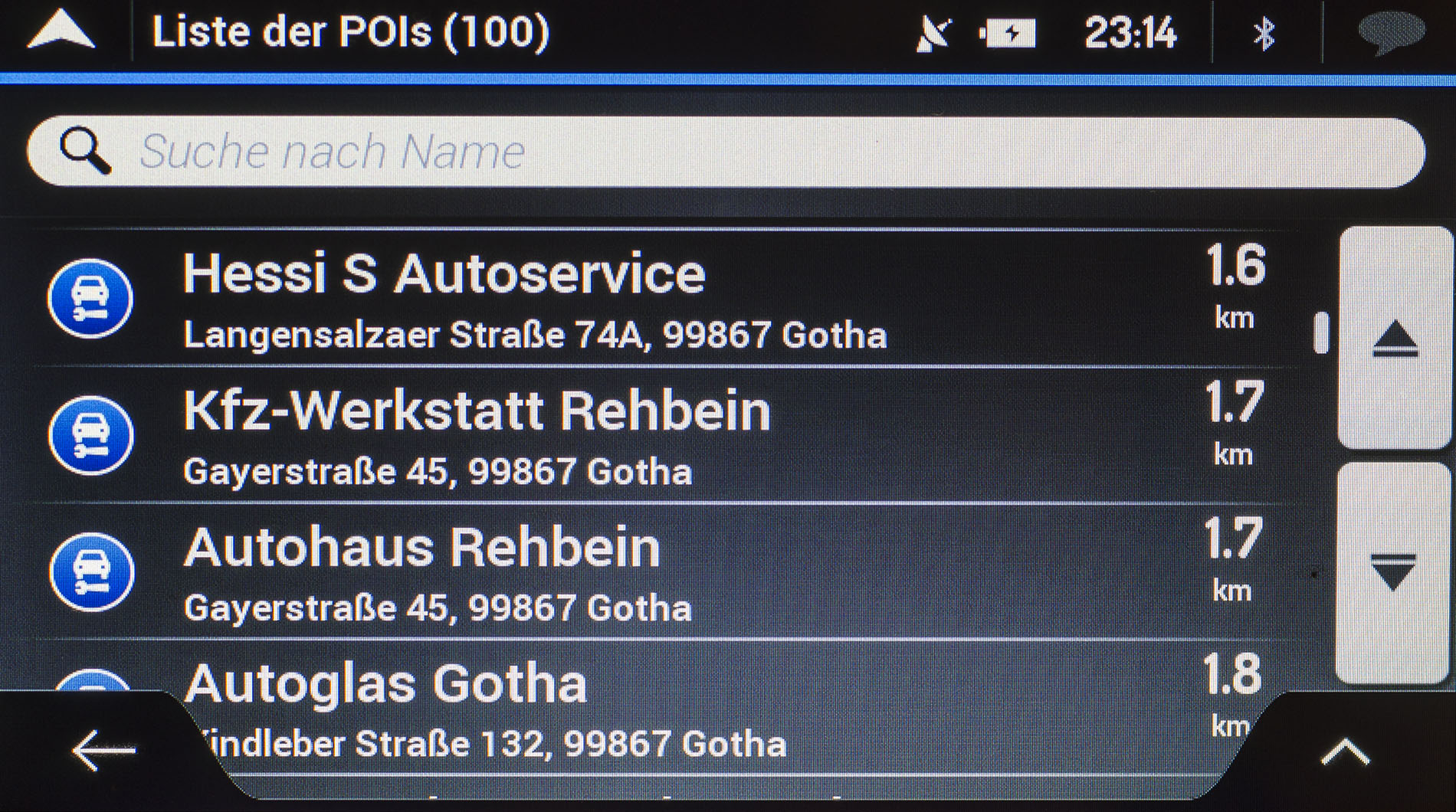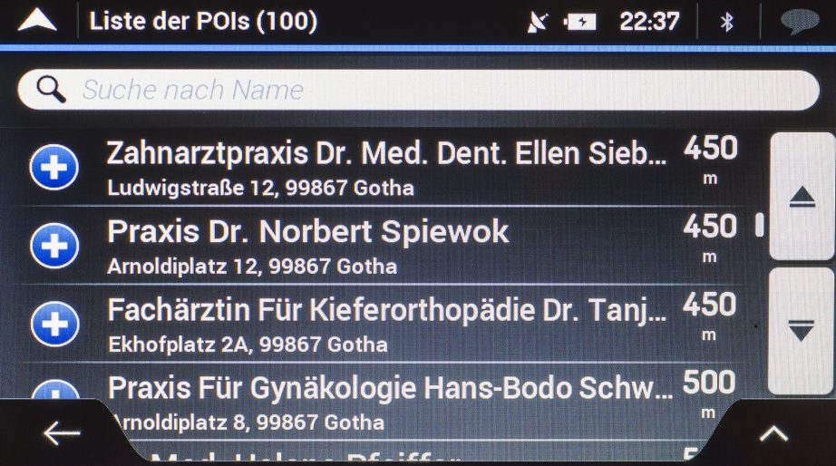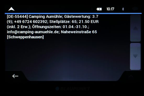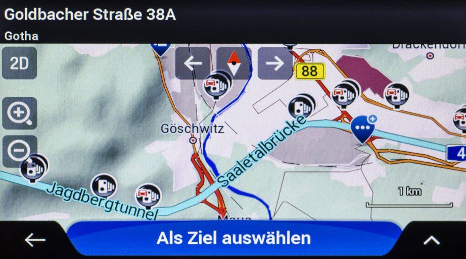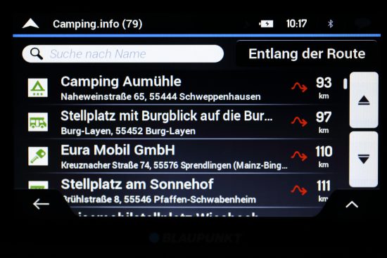 Die Auswahl und Anzahl interner POIs kann sich sehen lassen. Allerdings sind die Datenbanken etwas veraltet wodurch gerade bei schnelllebigen Dienstleistungen wie Restaurants und Cafés einige schon länger nicht mehr existieren und einige noch nicht mit aufgeführt werden. Etablierte Hotels und Tankstellen ließen sich in unserem Test hingegen gut über die POI-Suche wiederfinden. Neben den Koordinaten sind in den POIs maximal die Telefon- und Faxnummer hinterlegt. Öffnungszeiten oder Kundenbewertungen fehlen hingegen gänzlich. Hier geht Garmin mit seinen Foursquare und TripAdvisor POIs eindeutig mehr mit dem Zeitgeist.