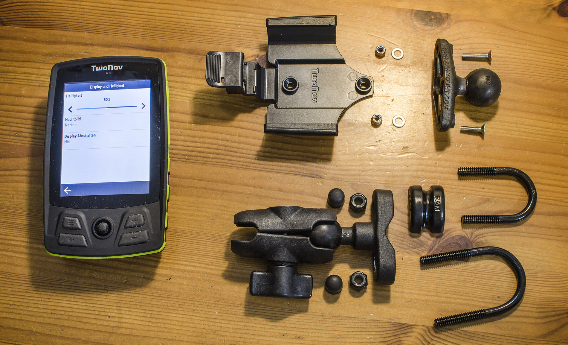 Kauft man sich das TwoNav Aventura Motor, handelt es sich um ein Set, dem auch ein RAM-Mount mit spezieller Halteschale für das Aventura beiliegt. Alle Teile werden über Schrauben gesichert, wodurch das Aventura in unserem Test extrem stabil an unserem Fahrradlenker verharrte. Trotzdem führten Kopfsteinpflaster oder unbefestigte Wege zu reichlich Vibrationen des Gerätes. Die Montage war mit dem richtigen Werkzeug einfach und ging zügig vonstatten. Einziger Kritikpunkt ist der feste Sitz vom Aventura in der Halteschale selbst, denn es erfordert schon etwas Kraft und Fingerspitzengefühl um es da wieder heraus zu bekommen.