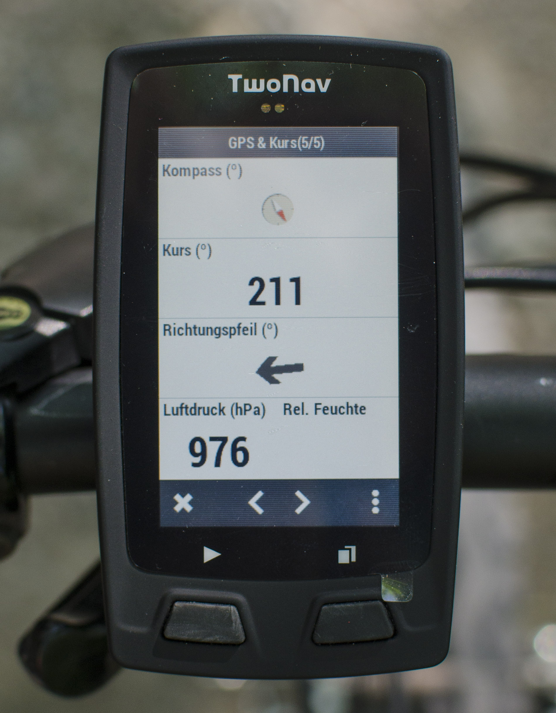 Beide TwoNav-Geräte verfügen über einen Drucksensor für die barometrische Höhenmessung. Will man auf seinen Touren die erklommenen und abgestiegenen Höhenmeter aufzeichnen, ist dies mit Abstand die genauste Technik um dies zu tun. Verlässt man sich hingegen auf die Höhenberechnung anhand der Satelliten gestützten Positionsbestimmung, kommt es nicht selten zu Abweichungen in Bereichen von 50 Metern und mehr. Ursache sind die immer wieder auftretenden Schwierigkeiten beim Empfang des jeweiligen Satellitensignals.