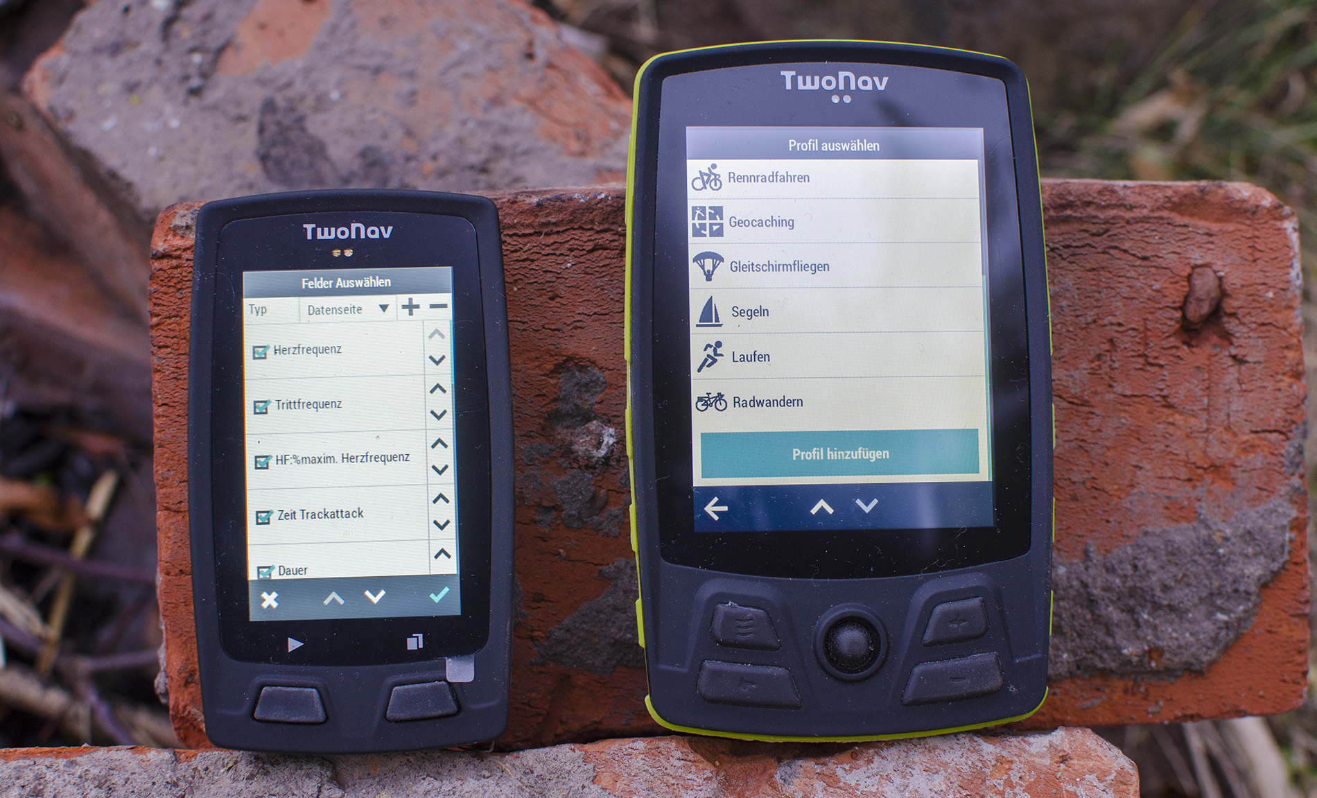 Garmin bietet bei vielen Geräten, wie bspw. beim GPSMAP 64st, noch zusätzliche Funktionen wie Wecker, Stoppuhr oder Smart Notifications. Beim Oregon 750t packt das Unternehmen durch Connect IQ sogar noch mehr Features oben drauf. TwoNav bleibt in diesem Bereich zurückhaltender. Dennoch gibt es in den unendlichen Weiten der Datenfelder noch einige nützliche Informationen, die man nicht übersehen sollte: Sonnenaufgang – Sonnenuntergang – Höhe Barometrisch – Höhe GPS – Kumulierte Entfernung Profil – Kumulierte Gesamtdistanz – Distanz zum nächsten Blitzer – Kompass – Kurs – Kurs magnetisch – Anzahl verwendeter Satelliten – Genauigkeit – Koordinaten – Luftdruck – Relative Feuchte – Herzfrequenz.
