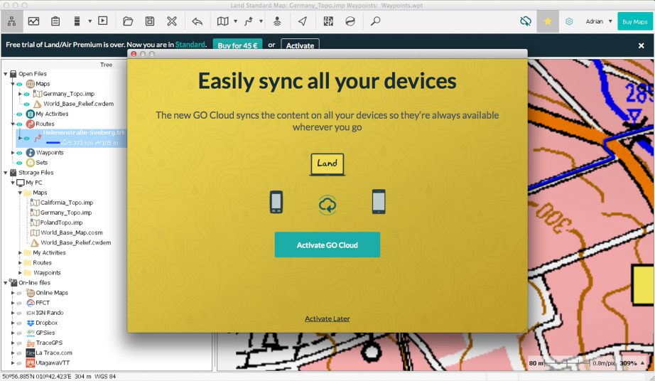 Wir waren in unserem Test sehr zu frieden mit der Vielfalt an Optionen, die diese Software mit sich bringt. Die Geräte und die Software sind wirklich gut aufeinander abgestimmt. So sehen bspw. die Symbole der Aktivitäten oder die unterschiedlich eingefärbten Tracks zur Darstellung von Fitness-Werten auf allen Geräten identisch aus. Dieser Wiedererkennungswert macht die Arbeit mit der Software intuitiver und spaßiger. Auch die Stabilität der Software hat uns wirklich überrascht. Bei Garmins Basecamp Software waren Abstürze zum Teil schon an der Tagesordnung. Auch bei der Installation von zusätzlichen (Relief-)Karten verlief das Zusammenspiel der Online-Plattform (Datei-Download), dem TwoNav Downloader (Zusatz-Software), der Land 8 Software und dem angeschlossenen Gerät reibungslos!