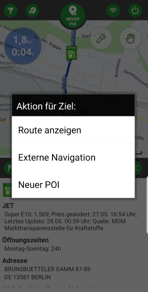 Bleibt noch die POI-Kategorie mit dem grauen Symbol. Sie enthält alle Tankstellen, ohne die von uns vorgenommene bunte Unterteilung. Die Preisinformationen liegen nur im Beschreibungstext vor.
