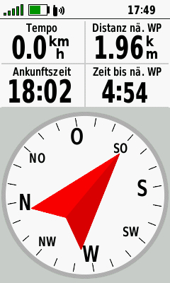Hier galt es wieder, den Großen Wagen ausfindig zu machen und die beiden Sterne der Wagenfront miteinander zu verbinden. Die Verlängerung dieser Strecke um ihr 5-faches hat unseren Blick genau zum Polarstern geführt. Damit hatten wir Geographisch Nord gefunden. Durch das Hinzudenken von 2 Grad in Richtung Osten hatten wir schließlich Magnetisch Nord ausfindig gemacht (von Deutschland aus gesehen). Nun war Garmins neustes Outdoor-Navi an der Reihe und sollte letzteren Punkt ebenfalls finden, ganz ohne astronomisches Wissen. Tatsächlich hat der Kompass unsere Erwartungen erfüllt, denn es hat Magnetisch Nord ebenfalls sehr zuverlässig ermittelt.