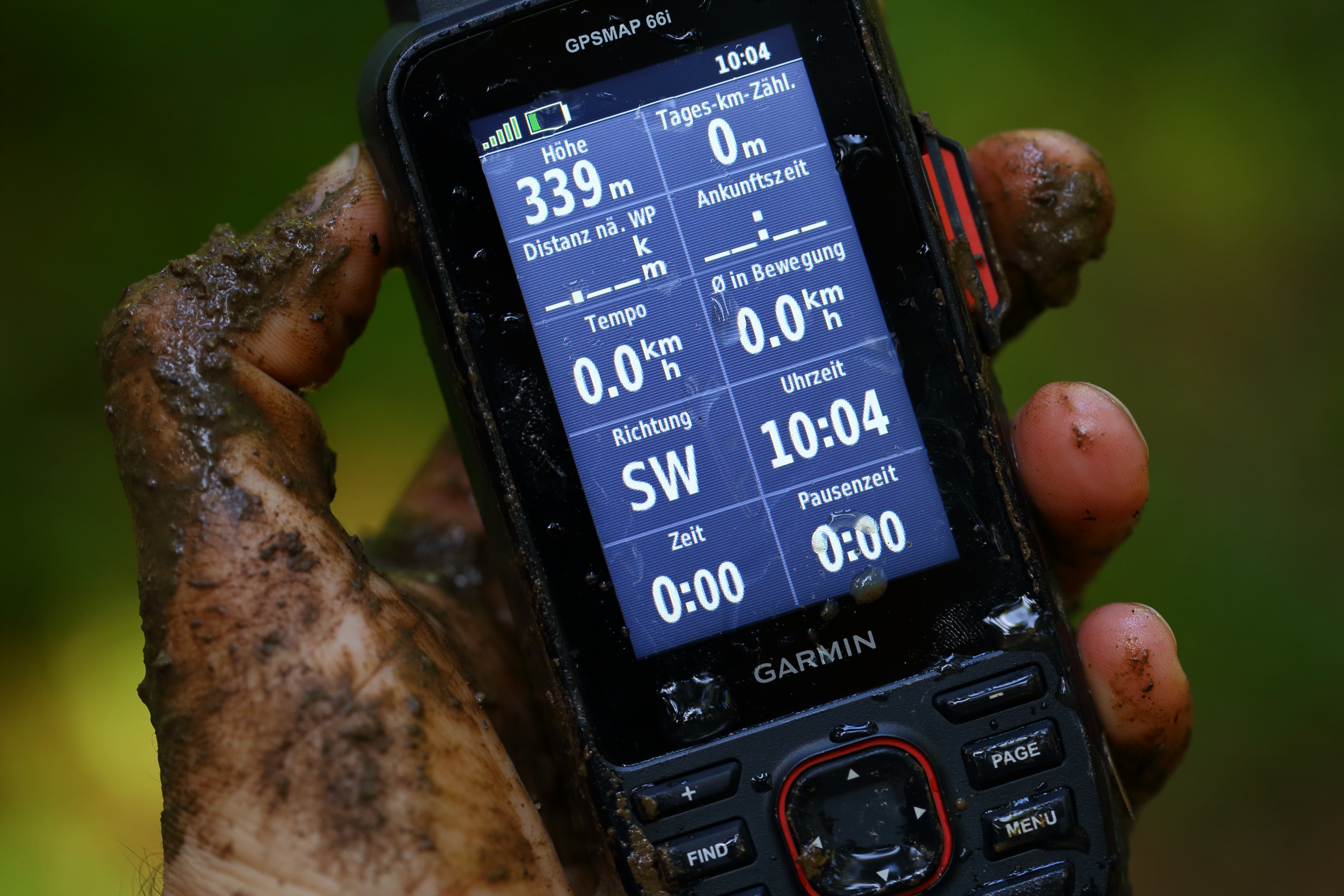 Der Display des 66i hat eine Bildschirmdiagonale von 3 Zoll (3,8 x 6,3 cm x 7,6 cm) und löst mit 240 x 400 Pixeln auf. Die Größe und Auflösung des Bildschirms ist damit die gleiche, die wir bereits vom Garmin Oregon 750t kennen. Allerdings hat Garmin beim 66i bezüglich des Displays nachgebessert und den Kontrast und die Stärke der Hintergrundbeleuchtung angehoben. Das TwoNav Aventura bietet im Vergleich dazu 480 x 640 Pixel und eine 3,7 Zoll große Bildschirmdiagonale. Zugleich sind beim Aventura die Kontraste und die Hintergrundbeleuchtung in Innenräumen wesentlich knackiger. Dafür bietet das GPSMAP 66i bei Outdoor-Situationen (vor allem im direkten Sonnenlicht) geniale Kontraste und Farben. Damit erreicht es eine Ablesbarkeit von der das Aventura nur träumen kann. Außerdem liegt das 66i wesentlich besser und sicherer in der Hand. Durch den Verzicht auf die Touch-Technologie ist es ohnehin viel besser als Allround-Outdoor-Navi geeignet, da es sich, selbst mit Handschuhen, mühelos mit nur einer Hand bedienen lässt.