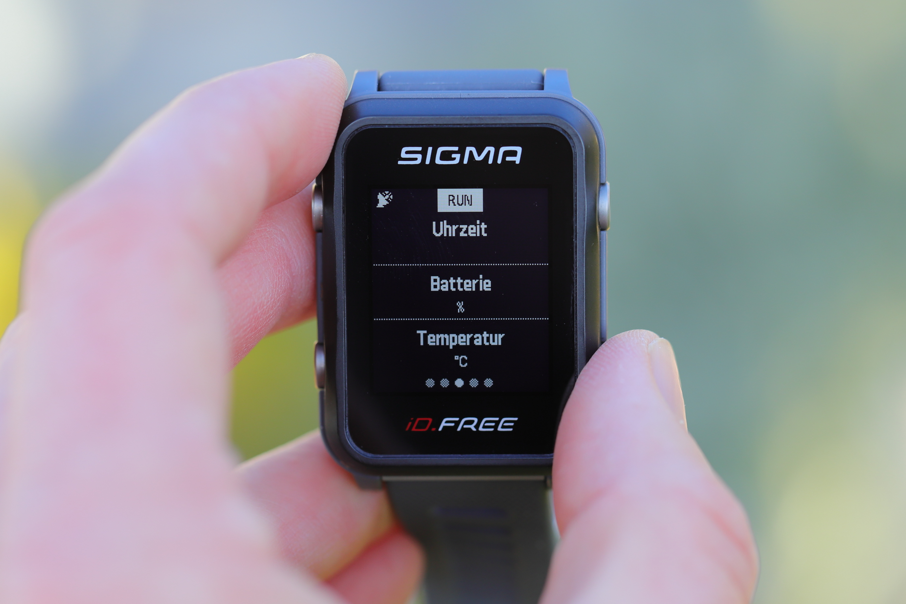 Lassen sich die vier (unbeschrifteten) Knöpfe beherrschen? Ja, denn die Logik lässt sich relativ leicht merken. Die Druckpunkte sind deutlich ausgeprägt, auch für Handschuhbedienung. Oben rechts wird gestartet und bestätigt, oben links geht es zurück. Die beiden unteren Tasten stehen für + und – Funktionen. Das Graustufendisplay lässt sich bei verschiedensten Beleuchtungssituationen sehr gut ablesen. Die Ablesbarkeit ist im direkten Vergleich sogar noch mal etwas besser als bei der Garmin fenix5/6 Serie. Auf eine Touchscreenfunktion wurde verzichte, was bei Outdoor-Uhren nicht unbedingt ein Nachteil sein muss und Fehlbedienungen reduziert. Merken sollte man sich nur den Parallelgriff der beiden unteren Tasten zur Hintergrundbeleuchtung und das längere Drücken der Taste unten rechts beim Training, um ein Schnellmenü aufrufen zu können. Nachtfahrten sind leider kaum möglich, denn die Hintergrundbeleuchtung der iD.FREE lässt sich nicht auf permanent einstellen.