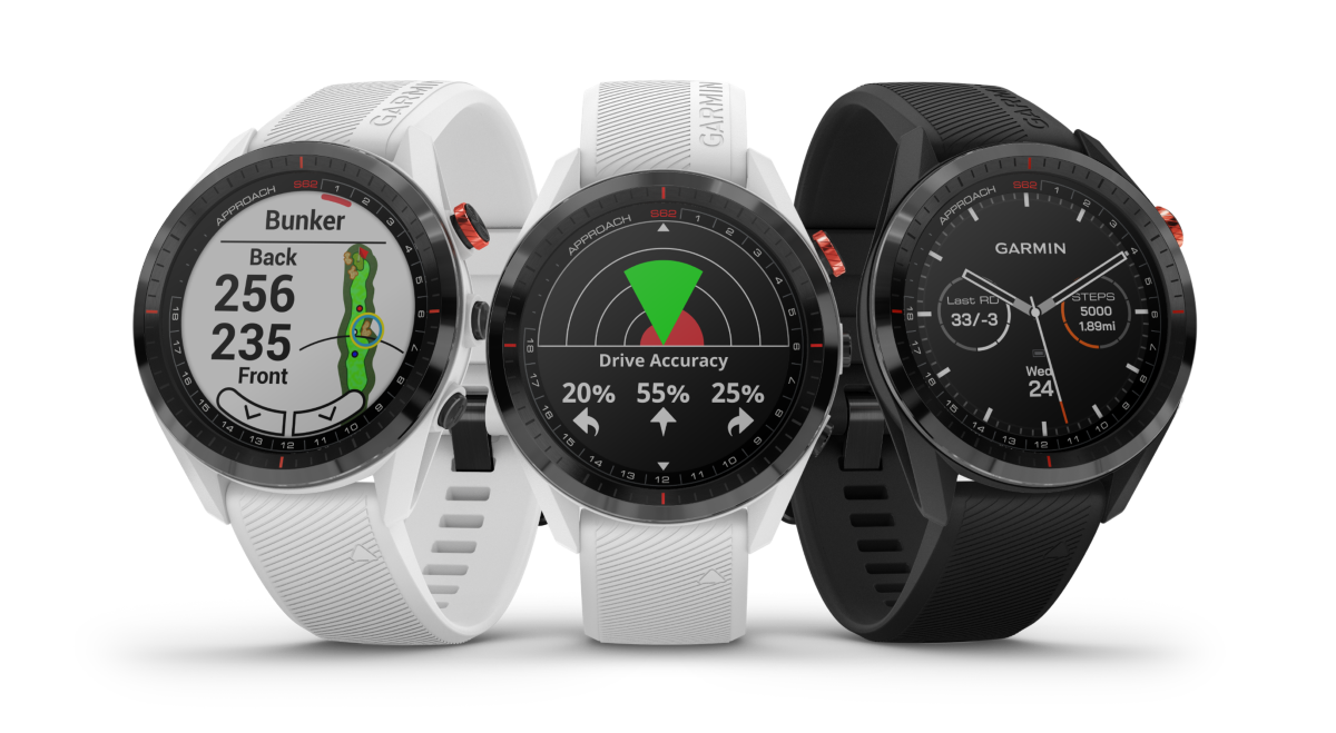 Garmin hat die Approach S62 mit 41.000 Golfplätzen weltweit, damit insgesamt 1000 Plätzen mehr, und einem virtuellen Caddie ausgestattet. Der Caddie empfiehlt auf Grundlage der auf der Uhr angezeigten Windgeschwindigkeit und Windrichtung sowie der für den Golfsportler typischen Schlagweite einen entsprechenden Schläger. Insbesondere für Golfanfänger wird der virtuelle Caddie eine hilfreiche Funktionserweiterung. Neu ist ebenfalls die Herzfrequenzmessung am Handgelenk und der Pulse Ox Sensor zur Messung der Sauerstoffsättigung im Blut.