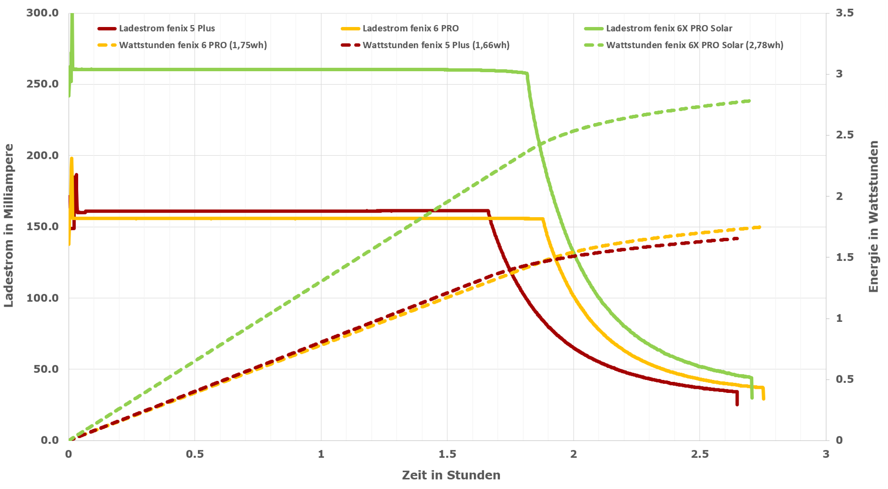 Die längste Laufzeit aller fenix 6 Modelle hat die fenix 6X PRO Serie. Die längere Akkulaufzeit ist vor allem einem größeren Akku zu verdanken. Wir haben die Kapazität gemessen, welche nötig ist, um die Uhren vollständig zu laden. Daraus lassen sich dann leicht Rückschlüsse auf die verbaute Akkukapazität ziehen.