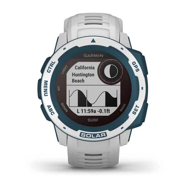 Was macht die Garmin Instinct Solar Surf zur Surf-Smartwatch? In Kooperation mit dem Deutschen Surfprofi Marlon Lipke, der 2019 Sieger der Surf DM wurde, hat Garmin ein spezielles Surf-Aktivitätenprofil erstellt, das relevante Informationen für Wellenreiter aufzeichnet. Dazu zählen Informationen zu Gezeitendaten, Anzahl der gesurften Wellen, die Gesamtzeit der Surf-Aktivität, den längsten Surfride (längste gesurfte Welle) und die erreichte Höchstgeschwindigkeit.