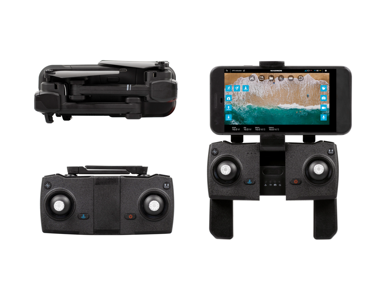 Ausgestattet ist die 248 Gramm schwere Drohne mit einer Kamera, welche Luftaufnahmen in Full-HD-Qualität schießt. Die Videos und Fotos können auf dem Smartphone, aber auch auf der mitgelieferten 32 GB großen microSD-Karte gespeichert werden. Allerdings reduziert sich die Auflösung bei auf dem Smartphone gespeicherten Bildern von Full-HD auf HD (1280 x 720 Auflösung).