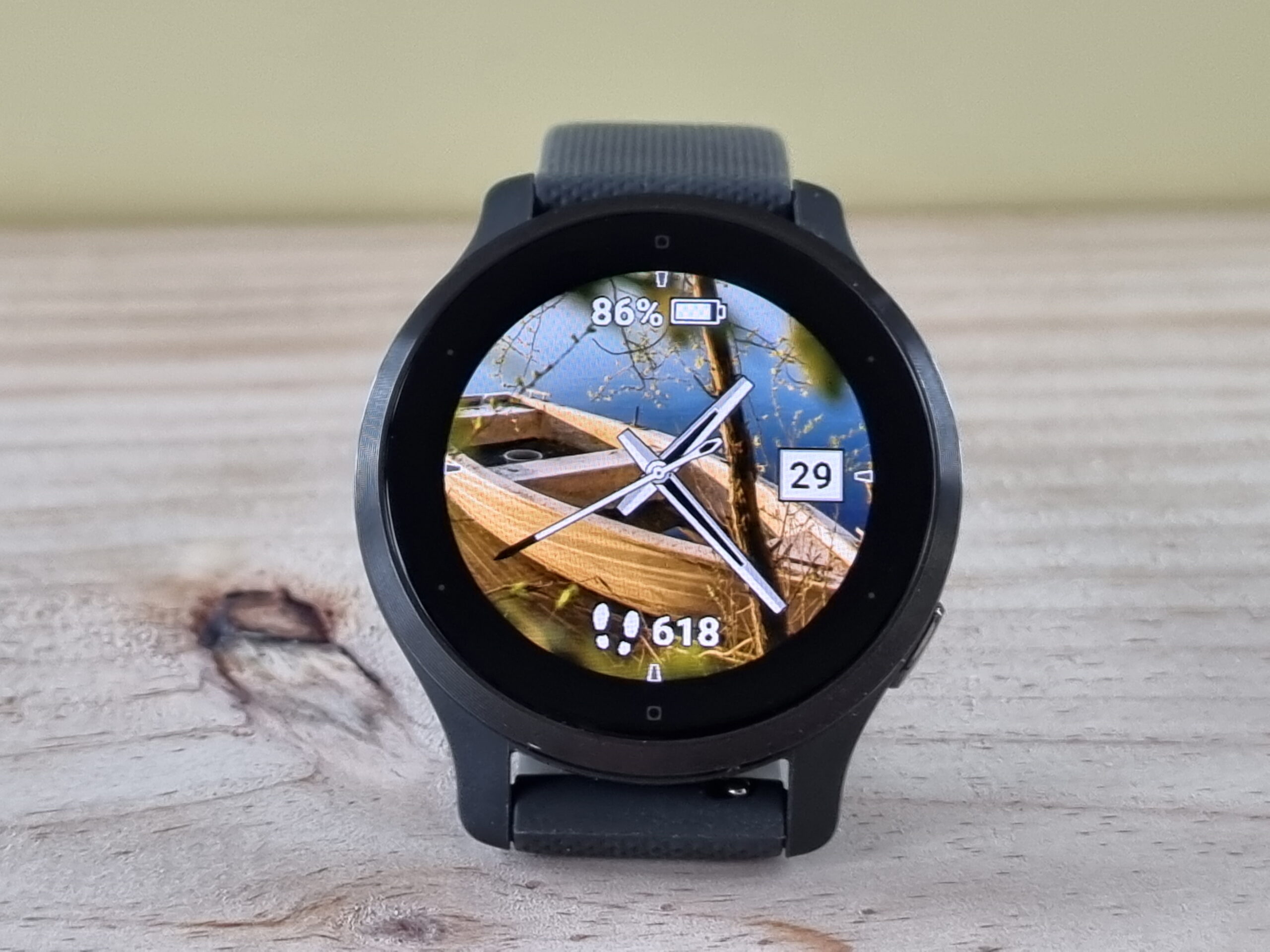 Besonders nett ist das neue Design der Symbole und Icons: Sie kommen nicht mehr in knalligen Signalfarben daher, sondern als kleine Zeichnungen mit Schattierungen und Farbabstufungen, wie etwa beim Wetter-Widget oder den Sport-Apps. Abgesehen von den recht schicken vorinstallierten Displaydesigns, ist es über den Connect IQ 4.0 Shop mit dem sogenannten MyWatchFace sogar möglich, eigene Bilder und Fotos als Hintergrundbild zu verwenden. Die Watchface-Option heißt: Face it! Allerdings müssen Nutzer dazu bereit sein, dann auf den Always-On-Modus zu verzichten. Und die Installation kann bis zu 30 Minuten dauern. Uns gefällt diese Möglichkeit, bis auf den Umstand, dass mit den persönlichen Watchfaces der dicke, schwarze Rand auf den Smartwatches dann schon arg ins Auge fällt. Vielleicht gestaltet Garmin den Rand der Uhren demnächst schmaller? Wer weiß.