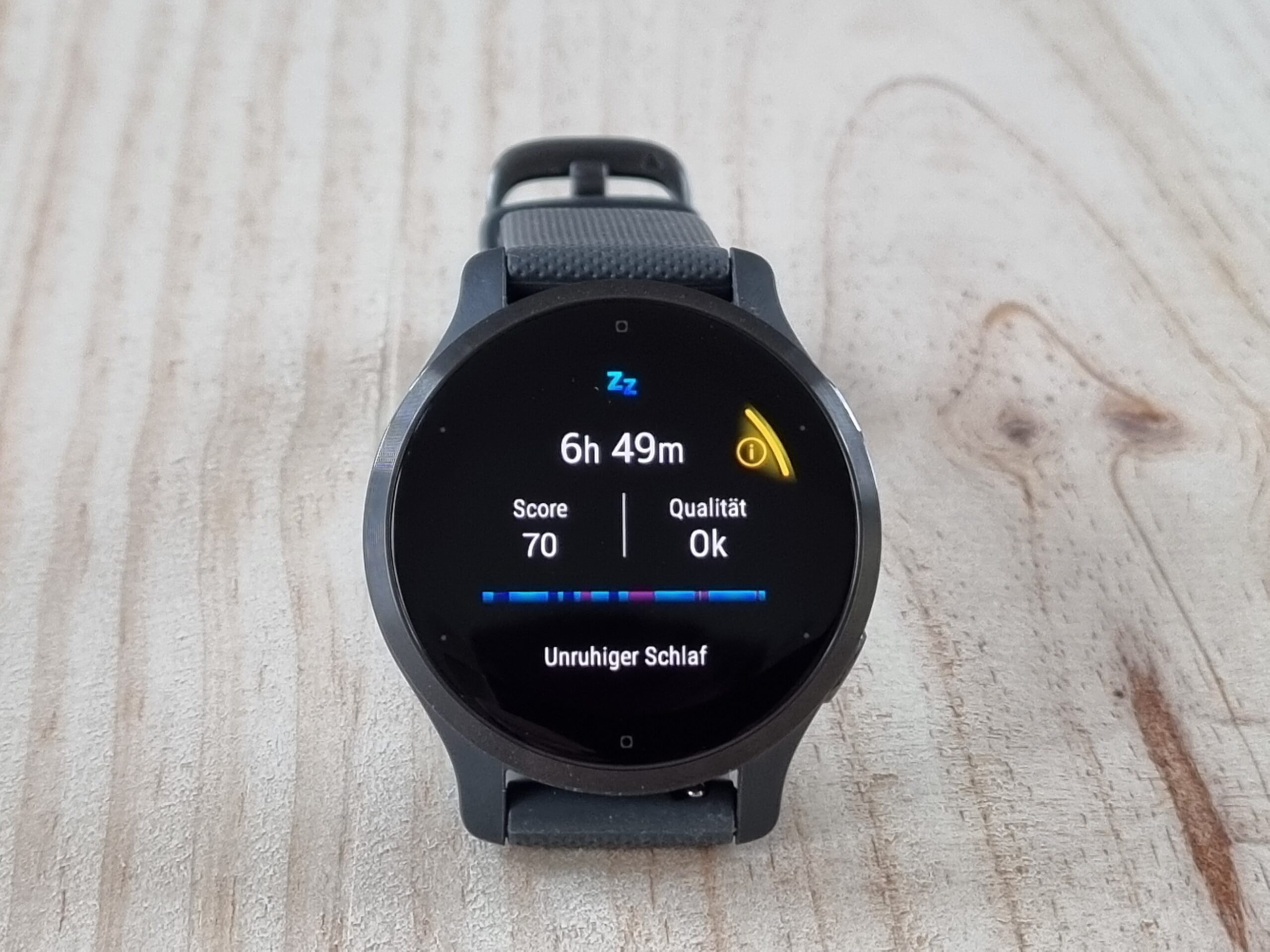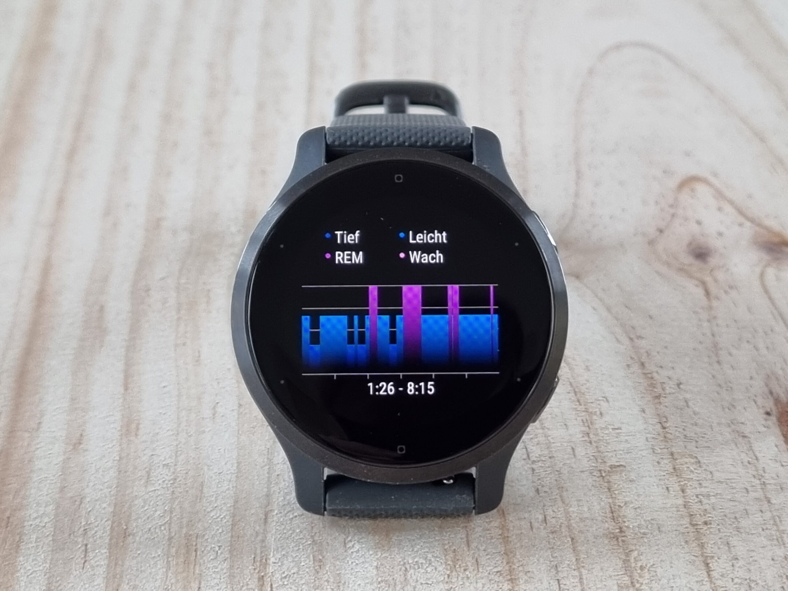 Um bessere Aussagen über die Energiereserven über den Tag hinweg zu machen, hat Garmin den Body-Battery-Algorithmus der Venu-2-Serie verbessert. Das Energielevel wird üblicherweise aus den Parametern Stress, Schlaf und Training errechnet – Training, weil Sport und Bewegung als präventiver Faktor für die Gesundheit gelten. Die Optimierung des Algorithmus ermöglicht nun auch bessere Prognosen zur Schlafqualität. Und so gibt Garmin neuerdings nach jeder Nacht ein Statement zur Schlafqualität direkt auf der Uhr ab, etwa ob man zu wenig oder zu unruhig geschlafen hat und dementsprechend wie leistungsfähig oder ausgeruht man am Tag sein wird.