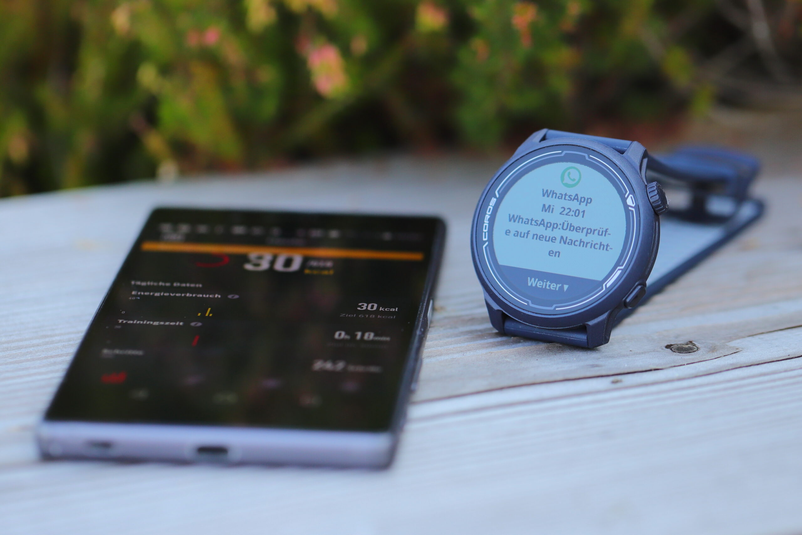 Durch die Erst-Konfiguration führen Garmin und Coros direkt nach Start auf der Uhr. Es wird gekoppelt und verbunden (mit dem Smartphone und den Anbieter-Apps Coros und Garmin Connect). Es werden Ziele eingerichtet, Benutzerdaten eingegeben und einiges mehr – alles Schritt für Schritt. Coros vermittelt einem dabei schon die ersten Manöver mit dem Scrollrad. Garmin ist an dieser Stelle bei der Erläuterung der Uhren-Bedienelement zurückhaltender.