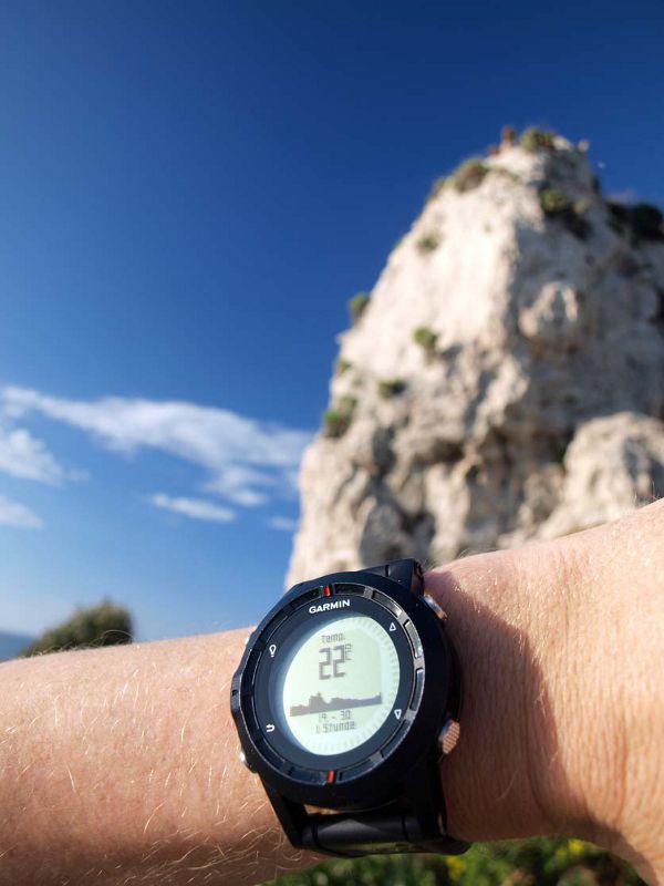 So machte die fenix 1 schon damals mit einer recht guten Akkulaufzeit, robustem Gehäuse, kratzfestem Display, GPS-Navigation am Handgelenk entlang von Tracks und Wegpunkten sowie nützlichen ABC-Sensoren (Barometer, Höhenmesser, 3-Achsen-Kompass), wie es sie bei Handgeräten gab, eine gute Figur. Die Akkulaufzeit betrug 16 Stunden im GPS-Modus.