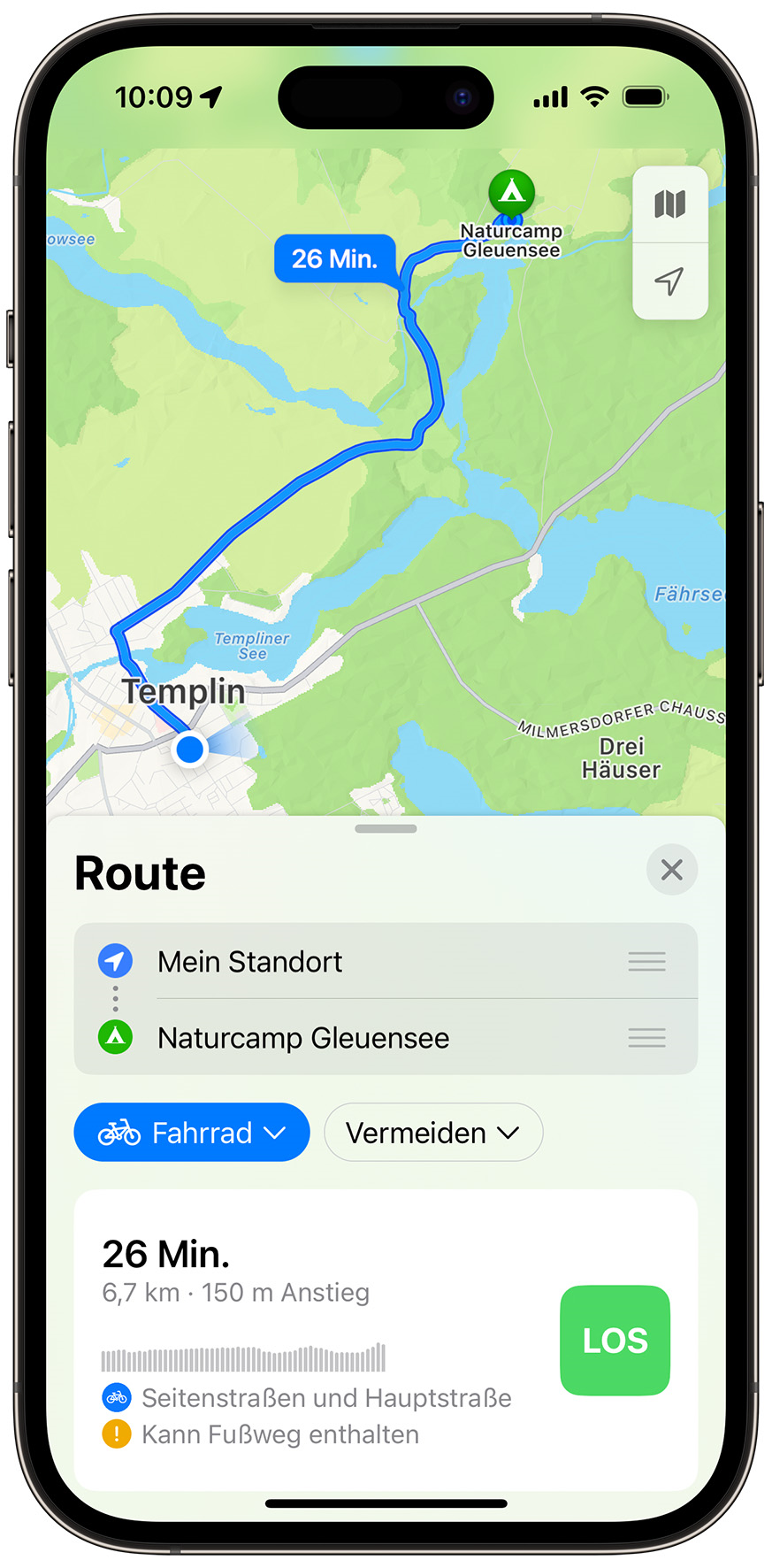 - Die Möglichkeit, das Fahrrad als Standardverkehrsmittel auszuwählen
