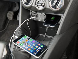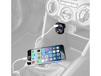 Mit dem revolt Mini-KFZ-USB-Ladegerät können Mobilgeräte im Fahrzeug mit Strom versorgt werden. Egal ob im Auto oder Wohnmobile, der kleine Stecker lässt sich an jedem 12- oder 24-Volt-Anschluss verwenden. Die 2 USB-Ports liefern jeweilg 2,4 Ampere, so können beispielsweise ein Smartphone sowie ein Navigationsgerät parallel geladen werden.