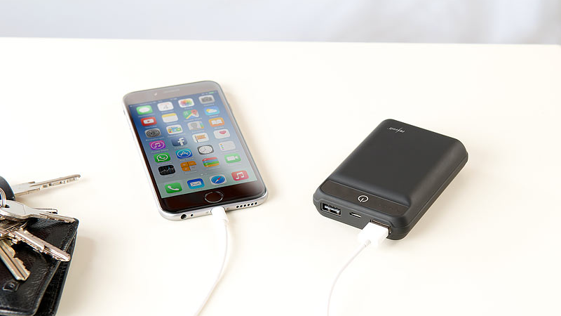 Kaum größer als eine Scheckkarte, lässt genügt der revolt Powerbank auch der kleinste Platz in Handtasche, Rucksack und Reisegepäck. Die Kapazität von 10.000 mAh verlängert die Laufzeit von Smartphones und anderen mobilen Geräten um viele Stunden und dank der 12 Watt Gesamtleistung können auch zwei Geräte gleichzeitig geladen werden. Dafür stehen gleich zwei USB-Buchsen zur Verfügung.