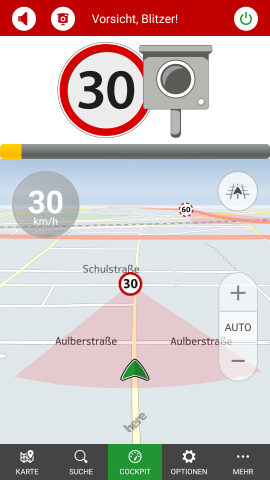 - Anzeige und Warnung beim Überschreiten der zulässigen Geschwindigkeit