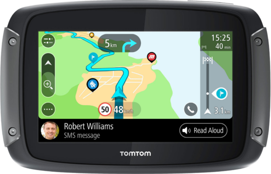 Das TomTom Rider 550 ist ein robustes Motorrad-Navi mit edlem Design. Das Motorrad-Navi von TomTom ist wasserdicht nach IPX7 und hält somit auch starken Regenschauern ohne einen zusätzlichen Schutz stand. Der 4,3 Zoll Bildschirm (480 x 272) lässt sich problemlos auch mit Motorradhandschuhen bedienen und kann dank einer neuen Rotationshalterung wahlweise im Quer- oder um Hochformat ausgerichtet werden. Sprachanweisungen kann sich der Fahrer per Bluetooth an ein gängiges Headset oder einen Helm mit eingebautem Kommunikationssystem senden lassen. Der interne Speicher des TomTom RIDER fasst 16 GB.