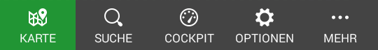 Online-/Offline-Kartenmodus [Pro+]: Im Offline-Modus wird nur der Karten-Cache verwendet und ggf. die unter Optionen Offline-Daten installierten Karten. Der aktive Offline Modus wird durch das graue Symbol angezeigt.