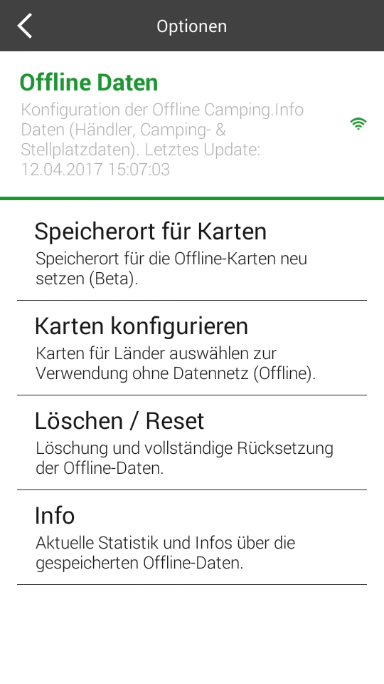 Camping.Info by POIbase: Optionen