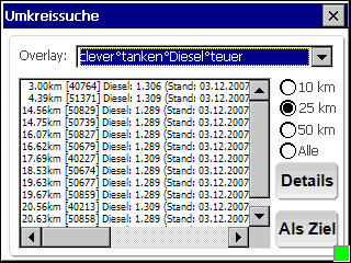 | POI-Kategorieauswahl TomTom GO (Für jede Spritsorte drei Preiskategorien) |