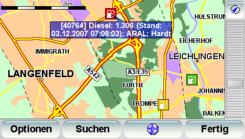 | Kartendarstellung MEDION GoPal 3 (Einblendung der POIs über POI-Warner) |